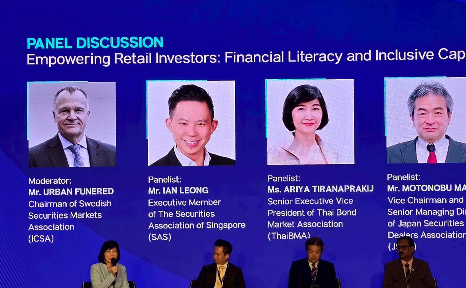 ThaiBMA Gallery ThaiBMA เข้าร่วมเป็นวิทยากรในการประชุม 30th Annual General Meeting of the Asia Securities Forum (ASF) 12 ก.ย. 2568 คุณอริยา ติรณะประกิจ รองกรรมการผู้จัดการ สมาคมตลาดตราสารหนี้ไทย (ThaiBMA) ได้เข้าร่วมเป็นวิทยากรในการประชุม 30th Annual General Meeting of the Asia Securities Forum (ASF) จัดโดย The Mongolian Association of Securities Dealers ณ กรุงอูลานบาตอร์ ประเทศมองโกเลีย เพื่อแลกเปลี่ยนมุมมองอนาคตตลาดทุนเอเชียด้านการเงินยั่งยืนและดิจิทัล 🌏 #ThaiBMA #ASF #CapitalMarket #SustainableFinance #DigitalFinance Back to Main Gallery