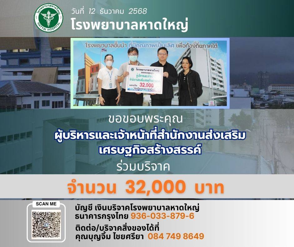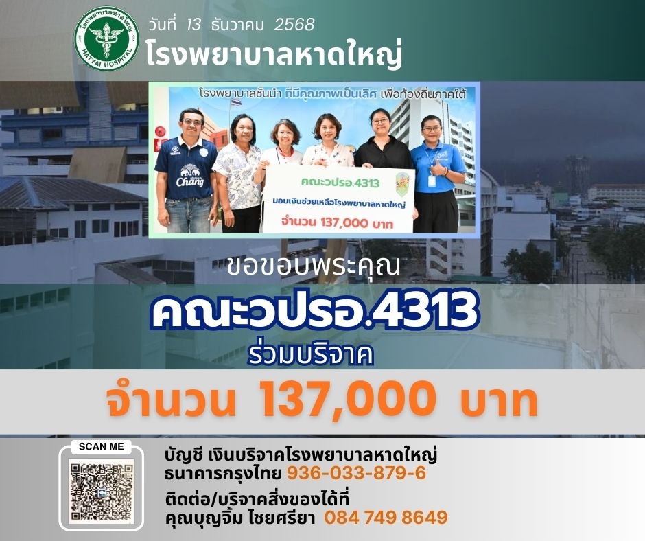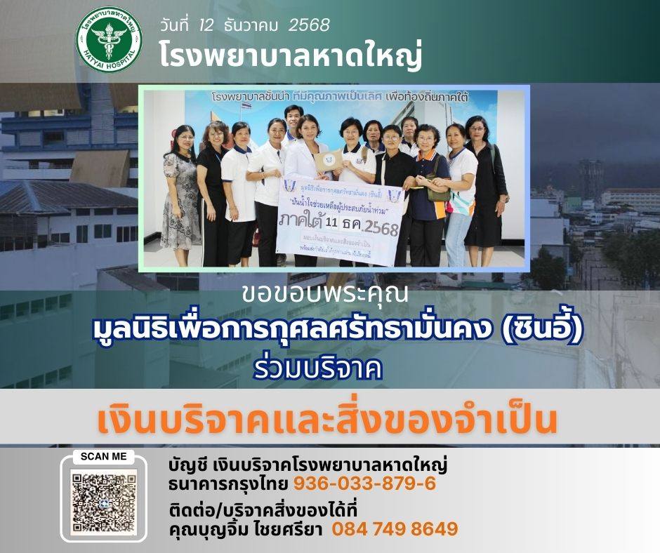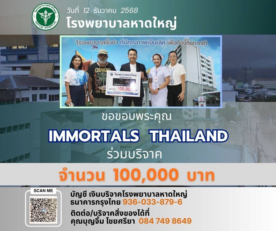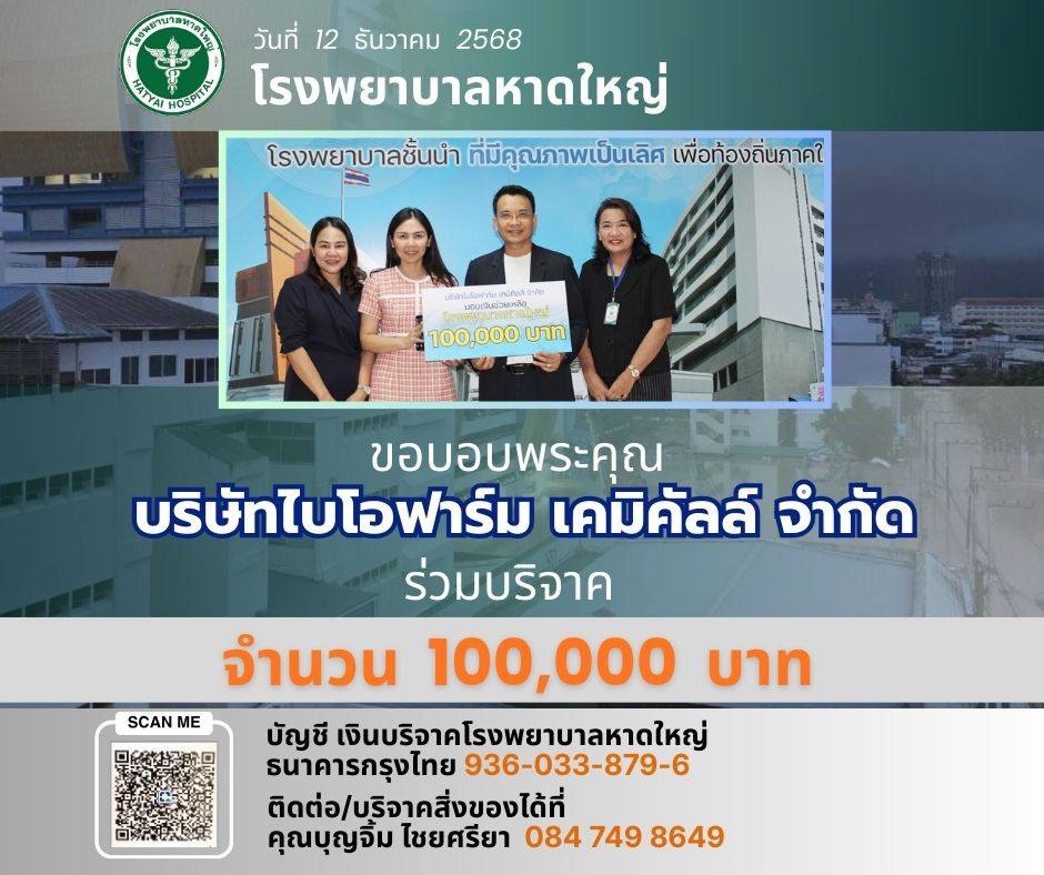 ThaiBMA Gallery ThaiBMA สนับสนุนเงินช่วยเหลือผู้ประสบอุทกภัยในพื้นที่หาดใหญที่ประสบอุทกภัย โดยขอร่วมบริจาคเงินช่วยฟื้นฟูโรงพยาบาลหาดใหญ่ ThaiBMA ขอร่วมส่งกำลังใจและความห่วงใยไปยังพี่น้องประชาชนในพื้นที่หาดใหญที่ประสบอุทกภัย โดยขอร่วมบริจาคเงินช่วยฟื้นฟูโรงพยาบาลหาดใหญ่ ขอให้ทุกท่านปลอดภัย ผ่านวิกฤตครั้งนี้โดยเร็ว 🙏 Back to Main Gallery