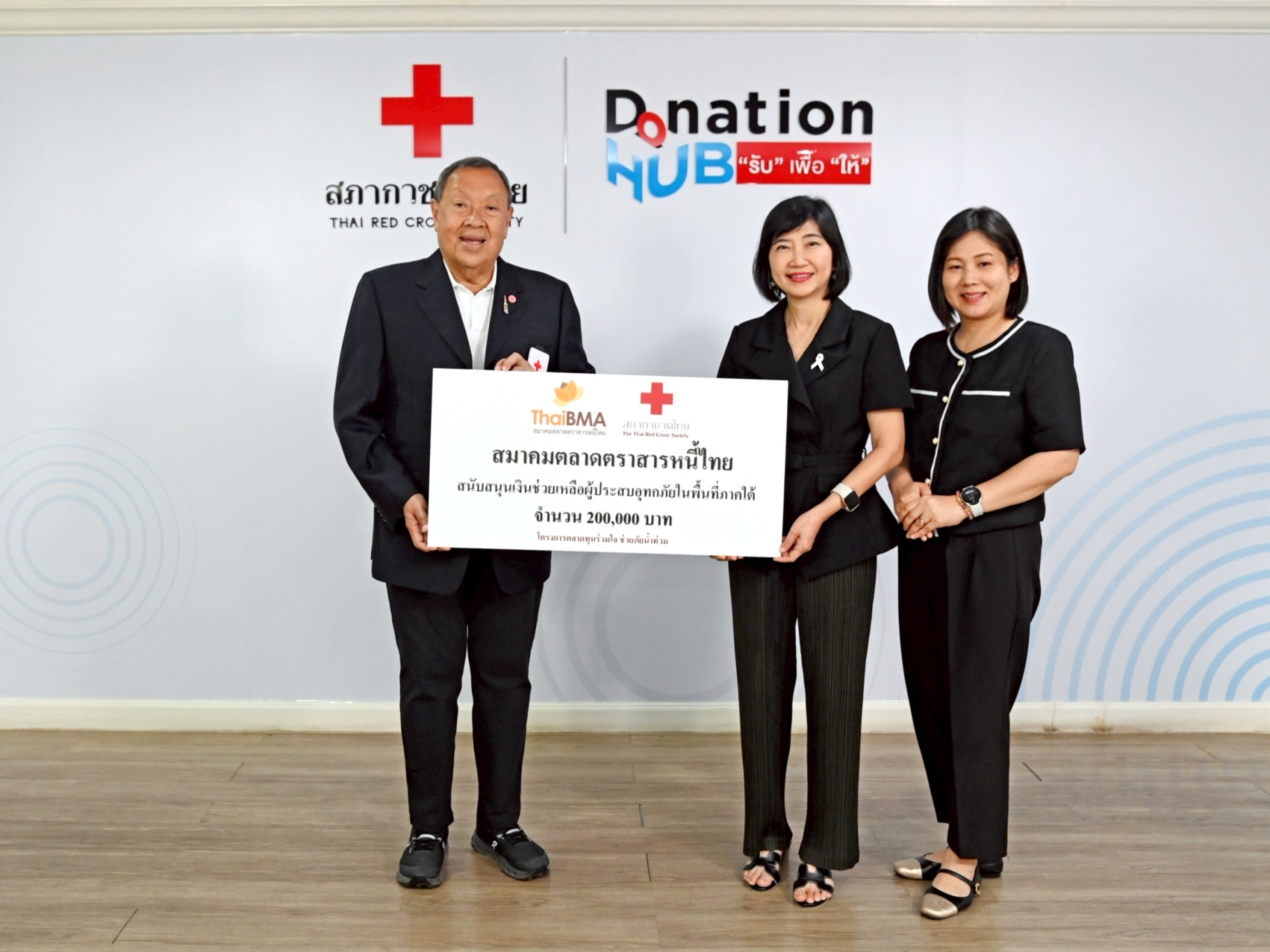 ThaiBMA Gallery ThaiBMA สนับสนุนเงินช่วยเหลือผู้ประสบอุทกภัยในพื้นที่จังหวัดภาคใต้ ผ่านสภากาชาดไทย สมาคมตลาดตราสารหนี้ไทย (ThaiBMA) ขอร่วมส่งกำลังใจและความห่วงใยไปยังพี่น้องประชาชนในพื้นที่จังหวัดภาคใต้ที่ประสบอุทกภัย ร่วมกับสภากาชาดไทย ขอให้ทุกท่านปลอดภัย และสามารถผ่านพ้นวิกฤตครั้งนี้ไปได้โดยเร็ว Back to Main Gallery