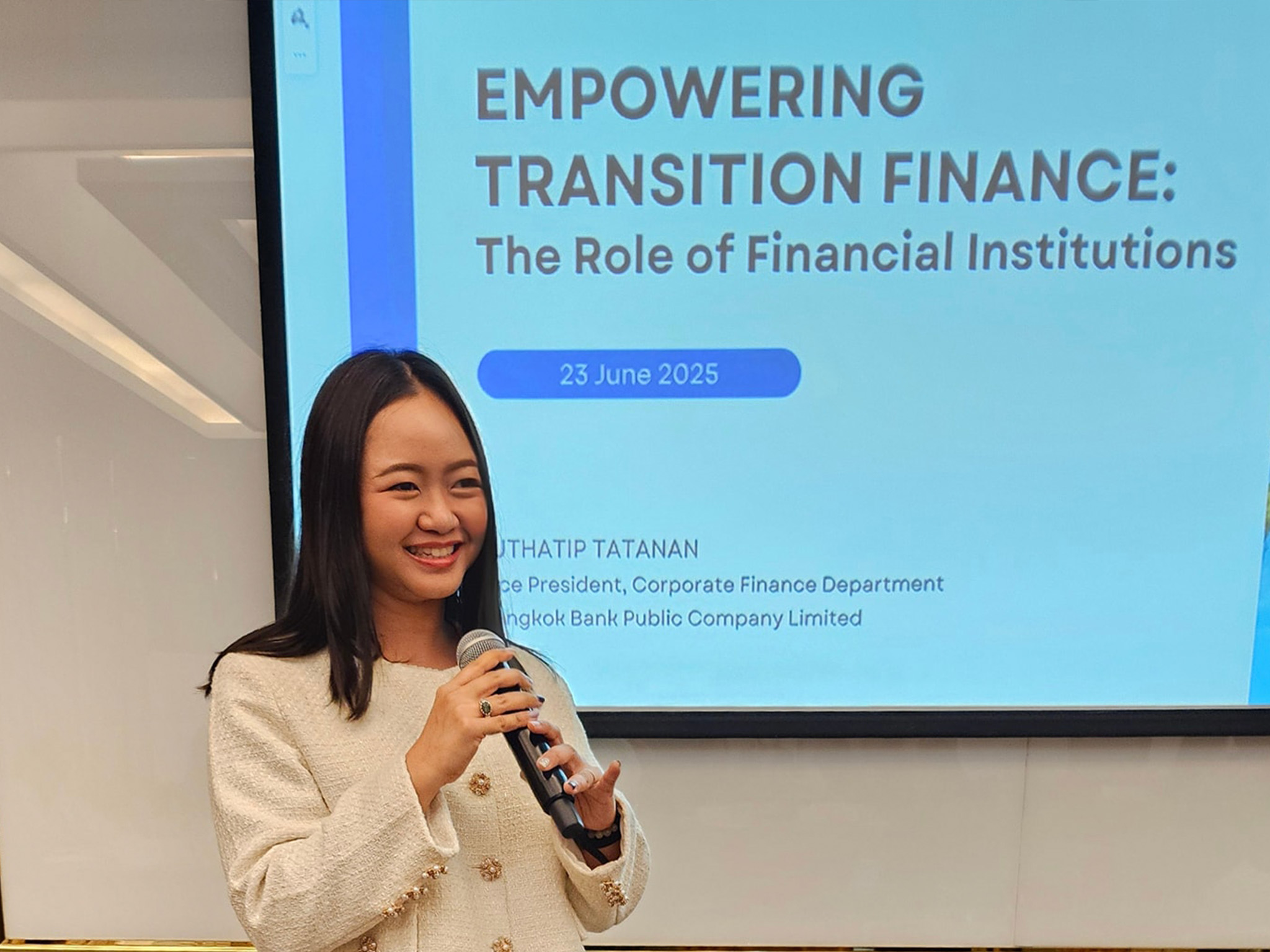 ThaiBMA Gallery Climate Bonds Initiative (CBI) ร่วมกับ ThaiBMA ได้จัดงานสัมมนา "Transition Plans: Designing and Understanding Credibility Workshop" 23 มิถุนายน 2568 Climate Bonds Initiative (CBI) ร่วมกับ สมาคมตลาดตราสารหนี้ไทย (ThaiBMA) ได้จัดงานสัมมนา "Transition Plans: Designing and Understanding Credibility Workshop" โดยมี ดร.สมจินต์ ศรไพศาล กรรมการผู้จัดการ ThaiBMA กล่าวเปิดงาน ตลอดทั้งวัน ผู้เข้าร่วมได้เรียนรู้และลงมือทำ Transition Plan ของตนเอง พร้อมรับความรู้เข้มข้นจากวิทยากรผู้เชี่ยวชาญจาก CBI, สำนักงานก.ล.ต. และธนาคารกรุงเทพ ในหัวข้อการเปลี่ยนผ่านที่น่าเชื่อถือ โอกาสทางการเงิน และการขับเคลื่อนสู่ความยั่งยืน ขอบคุณทุกท่านที่มาร่วมเป็นส่วนหนึ่งของงานสัมมนาวันนี้ #TransitionPlans #ThaiBMA #สมาคมตลาดตราสารหนี้ไทย #ClimateBondsInitiative #SustainableFinance #GreenTransition Back to Main Gallery