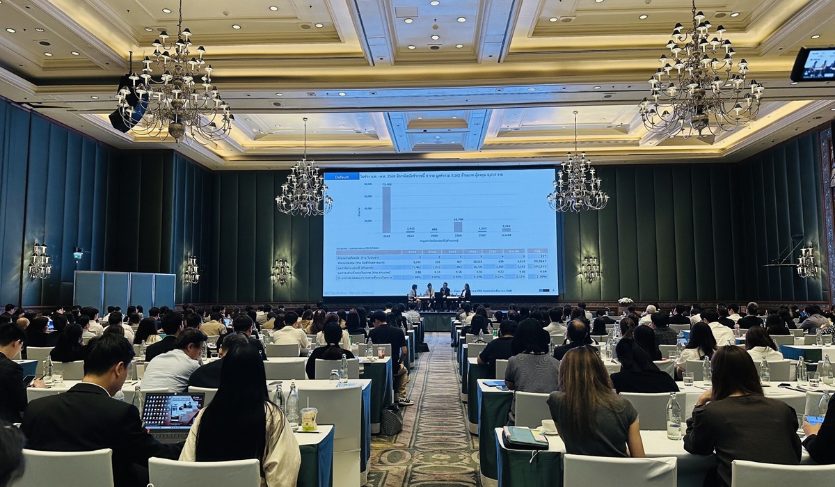 ThaiBMA Gallery ThaiBMA ร่วมงานสัมมนาเพื่อเสริมสร้างความรู้เกี่ยวกับหลักเกณฑ์การออกและเสนอขายตราสารหนี้ที่ปรับปรุงใหม่ในปี 2568 25 พฤศจิกายน 2568 ชมรมวาณิชธนกิจ สมาคมบริษัทหลักทรัพย์ไทย จัดงานสัมมนาเพื่อเสริมสร้างความรู้เกี่ยวกับหลักเกณฑ์การออกและเสนอขายตราสารหนี้ที่ปรับปรุงใหม่ในปี 2568 พร้อมแลกเปลี่ยนมุมมองตลาดตราสารหนี้ไทย–ต่างประเทศ การจัดอันดับเครดิต และประเด็นสำคัญในการยื่นขออนุญาตเสนอขายตราสารหนี้ สมาคมตลาดตราสารหนี้ไทย (ThaiBMA) โดย คุณอริยา ติรณะประกิจ รองกรรมการผู้จัดการ ร่วมเสวนาในหัวข้อ “ปัญหาและความท้าทายของการออกและเสนอขายหุ้นกู้...ในภาวะดอกเบี้ยขาลง” ณ ห้องแกรนด์ บอลรูม 2–3 โรงแรมแกรนด์ ไฮแอท เอราวัณ กรุงเทพฯ Back to Main Gallery