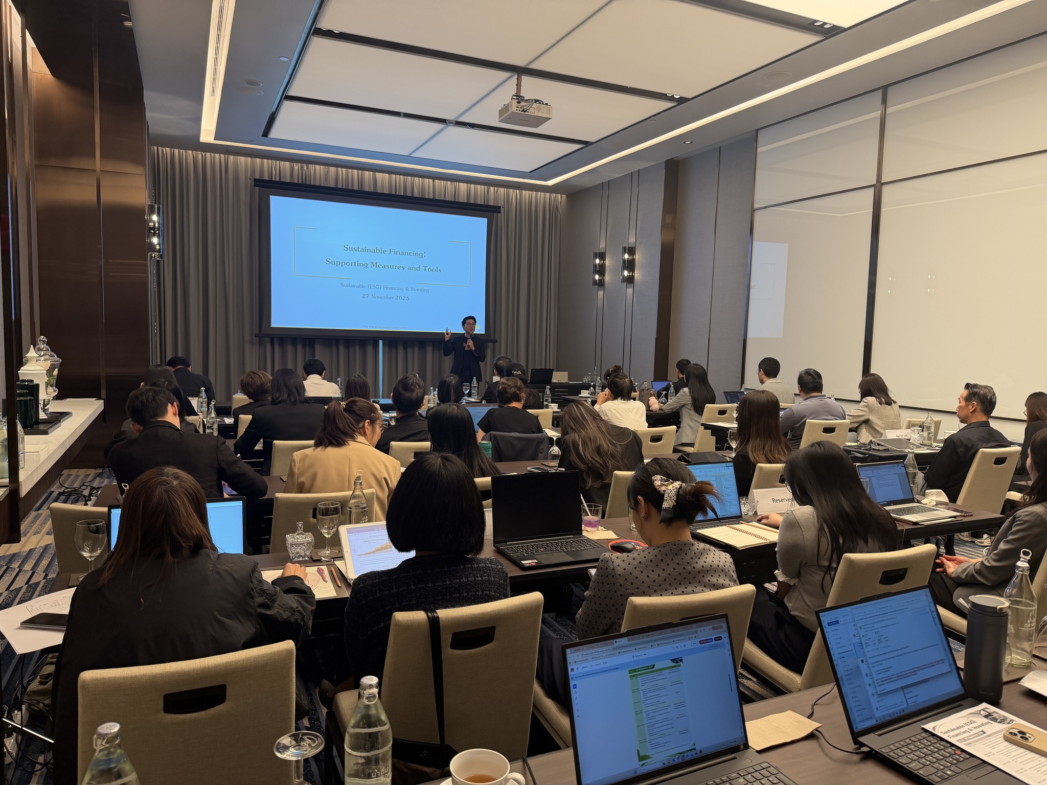 ThaiBMA Gallery การอบรม หลักสูตร Sustainable (ESG) Financing & Investing ภาพบรรยากาศการอบรม หลักสูตร Sustainable (ESG) Financing & Investing จัดขึ้นระหว่างวันที่ 27 – 28 พฤศจิกายน 2568 เวลา 09.00 – 17.00 น. ณ โรงแรมอีสติน แกรนด์ พญาไท Back to Main Gallery