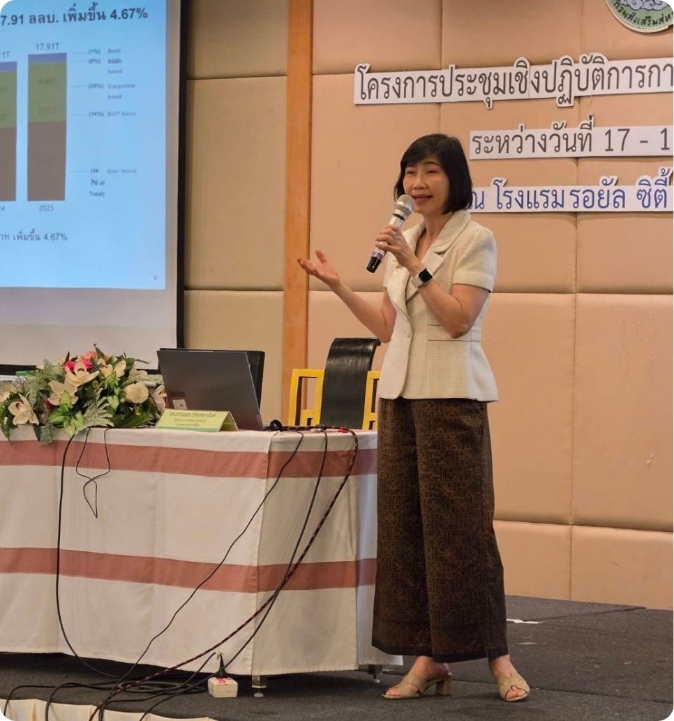 ThaiBMA Gallery ThaiBMA ร่วมเป็นวิทยากรในโครงการประชุมเชิงปฏิบัติการ “การลงทุนอย่างยั่งยืนในสหกรณ์” 17 มีนาคม 2569 คุณอริยา ติรณะประกิจ รองกรรมการผู้จัดการ ThaiBMA ดร.อรรถเดช อัทธเดชานันท์ รองผู้อำนวยการอาวุโส ThaiBMA ร่วมถ่ายทอดประสบการณ์ด้านการลงทุนในตลาดตราสารหนี้ไทย ในโครงการประชุมเชิงปฏิบัติการ “การลงทุนอย่างยั่งยืนในสหกรณ์” ณ โรงแรมรอยัลซิตี้ กรุงเทพฯให้กับผู้แทนสหกรณ์และเจ้าหน้าที่กรมส่งเสริมสหกรณ์กว่า 100 ท่าน เนื้อหาในการบรรยายมุ่งเน้นไปที่การเสริมสร้างทักษะการวิเคราะห์ความเสี่ยงด้านเครดิต (Credit Risk) และการคำนวณราคาและผลตอบแทน ซึ่งเป็นหัวใจสำคัญในการบริหารสภาพคล่องของสหกรณ์ให้เกิดประโยชน์สูงสุดแก่สมาชิกอย่างยั่งยืน Back to Main Gallery