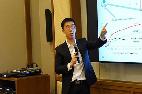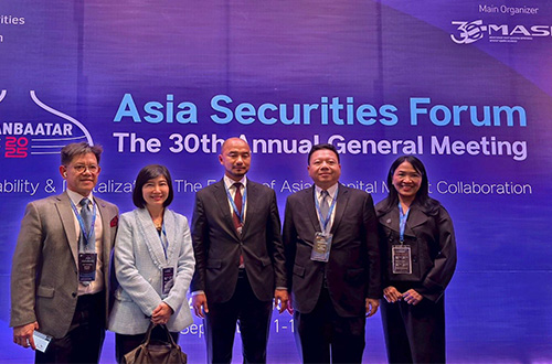 ThaiBMA Gallery ปี 2568 ปี 2567 ปี 2566 ปี 2565 ปี 2564 ปี 2563 ปี 2562 ปี 2561 ปี 2560 ปี 2559 ปี 2558 ตุลาคม 28 ต.ค. กิจกรรม Bond Academy 2025 รอบกรุงเทพ 28 ตุลาคม 2568 21-22 ต.ค. ThaiBMA เข้าร่วมงาน Asian Bond Pricing Forum 2025 21-22 ตุลาคม 2568 21 ต.ค. ThaiBMA ให้การต้อนรับ TFSC และ TLT 21 ตุลาคม 2568 21 ต.ค. ThaiBMA จัดบรรยาย (Online) หลักสูตรการตรวจสอบและกำกับดูแลธุรกรรมการซื้อขายตราสารหนี้ 21 ตุลาคม 2568 18 ต.ค. ThaiBMA จัดอบรมหลักสูตร Bond Trader Refresher Course 2025 รอบที่ 2 18 ตุลาคม 2568 16-17 ต.ค. การอบรม หลักสูตร Bond Portfolio Strategies & Product Design 16-17 ตุลาคม 2568 16 ต.ค. ThaiBMA ร่วมเป็นส่วนหนึ่งของโครงการ Software Park - WealthMagik เงินออมสร้างชาติ Awards Season 10 16 ตุลาคม 2568 16 ต.ค. ThaiBMA เข้าร่วมงาน CFA Society Thailand Annual General Meeting (AGM) 2025 16 ตุลาคม 2568 9 ต.ค. ผู้แทนจาก ธนาคารโลก เข้าหารือเกี่ยวกับ โอกาสในการออกตราสารหนี้ “Silver Bond” ในประเทศไทย 9 ตุลาคม 2568 7 ต.ค. ThaiBMA จัดงานแถลงข่าวสรุปภาวะตลาดตราสารหนี้ไทยไตรมาสที่ 3 ปี 2568 7 ตุลาคม 2568 กันยายน 25 ก.ย. การประชุมหารือเกี่ยวกับแนวทางการเชื่อมโยงข้อมูลผู้ถือพันธบัตรกับแอปพลิเคชัน MeBond 25 กันยายน 2568 23 ก.ย. Market Dialogue เรื่อง “โครงการปรับปรุง MTM ของ CBF 23 กันยายน 2568 12 ก.ย. ThaiBMA เข้าร่วมเป็นวิทยากรในการประชุม 30th Annual General Meeting of the Asia Securities Forum (ASF) 12 กันยายน 2568 11-12 ก.ย. โครงการ Bond Academy 2025 season 12 จังหวัดเชียงใหม่ 11-12 กันยายน 2568 5 ก.ย. โครงการ Bond Academy 2025 season 12 จังหวัดเชียงใหม่ 5 กันยายน 2568 สิงหาคม 28-29 ส.ค. การอบรมหลักสูตร Managing Investment Portfolio 28-29 สิงหาคม 2568 27 ส.ค. ThaiBMA ให้การต้อนรับ Professor Shunsuke Managi จาก Urban Institute, Kyushu University ประเทศญี่ปุ่น 27 สิงหาคม 2568 23 ส.ค. ThaiBMA จัดกิจกรรม CSR แวะช่วยน้อง ล่องเกาะเกร็ด เตร็ดเตร่ชุมชนรามัญ 23 สิงหาคม 2568 18-20 ส.ค. China bond market’s Education trip 18-20 สิงหาคม 2568 15 ส.ค. ผู้แทนจาก สวค. และ UNDP เข้าพบคณะผู้บริหาร ThaiBMA 15 สิงหาคม 2568 8 ส.ค. GGGI นำทีมผู้บริหารจาก LSCO, LSX และธนาคารเพื่อการเกษตรแห่งประเทศลาว เข้าพบผู้บริหาร ThaiBMA 8 สิงหาคม 2568 7-8 ส.ค. การอบรม หลักสูตร Strategic Investment Risk Management 7-8 สิงหาคม 2568 กรกฎาคม 29 ก.ค. คณะผู้บริหารจาก บสย. เยี่ยมชม ThaiBMA 29 กรกฎาคม 2568 20 ก.ค. ThaiBMA ร่วมเป็นวิทยากรในงานสัมมนาวิชาการของชุมนุมสหกรณ์กรุงเทพ 20 กรกฎาคม 2568 17-18 ก.ค. ThaiBMA จัดอบรมหลักสูตร Derivatives and its Applications in Thailand 17-18 กรกฎาคม 2568 14 ก.ค. งานสัมมนา FETCO x ThaiBMA Investment Forum 2025 14 กรกฎาคม 2568 8 ก.ค. ThaiBMA ร่วมการอบรมเชิงปฏิบัติการหัวข้อ “Building Resilient and Efficient Corporate Bond Markets in Growth and Emerging Markets” 8 กรกฎาคม 2568 4 ก.ค. ThaiBMA จัดงานแถลงข่าว สรุปภาวะตลาดตราสารหนี้ไทย ไตรมาสที่ 2 ปี 2568 4 กรกฎาคม 2568 มิถุนายน 28 มิ.ย. ThaiBMA จัดอบรมหลักสูตร Bond Trader Refresher Course 2025 No.1 (รอบชดเชย) 28 มิถุนายน 2568 27 มิ.ย. ThaiBMA จัดอบรมหลักสูตร Bond Mathematics : Essential Concepts & Tools 27 มิถุนายน 2568 23 มิ.ย. Climate Bonds Initiative (CBI) ร่วมกับ ThaiBMA ได้จัดงานสัมมนา "Transition Plans: Designing and Understanding Credibility Workshop" 23 มิถุนายน 2568 17 มิ.ย. คณะพาณิชยศาสตร์และการบัญชี จุฬาลงกรณ์มหาวิทยาลัย ร่วมกับสถานเอกอัครราชทูตไทย ณ กรุงบรัสเซลส์ และตลาดหลักทรัพย์ลักเซมเบ